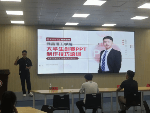 本次讲座由武汉市江夏区青年创业人才、湖北省十佳创业导师张俊辉主讲,武汉市极客匠心网络科技有限公司创始人容欢龙,2138CC太阳集团副院长万旸璐担任本次训练营的指导嘉宾。张俊辉以其丰富的PPT制作经验,为在场学生深入讲解了PPT制作的五个关键方面:案例鉴赏、注意要点、重要性、制作流程和现场指导。