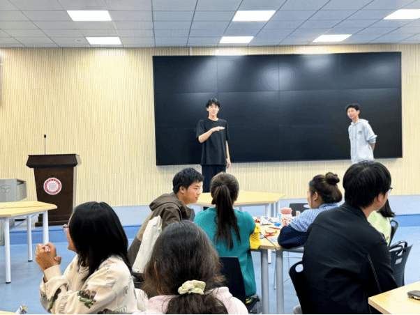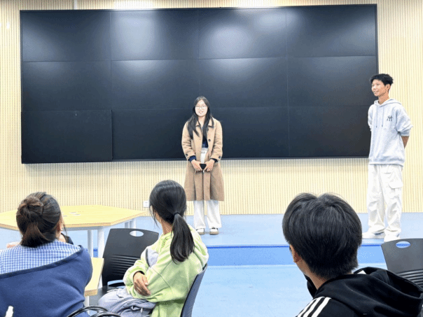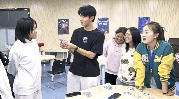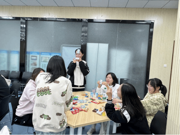 见面会现场洋溢着欢声笑语,气氛持续升温,一系列精彩纷呈的游戏将欢乐推向了巅峰。团队游戏“一元五角”环节,参与者们反应之敏捷犹如电光火石,组合变换间尽显灵动与默契。“Enjoy猜词”环节更是趣味无穷,负责比划的同学费尽心思,滑稽搞笑的动作与夸张生动的表情轮番上阵,而负责猜词的同学则全神贯注,仔细观察每一个细微的动作与表情,力求准确猜出谜底。至于“角色扮演”游戏,同学们仿佛化身专业演员,全身心投入角色之中,演绎得惟妙惟肖。这些游戏不仅为众人带来了无尽的欢笑与乐趣,更在无形中加深了彼此之间的了解与信任,让团队的凝聚力得到了显著提升。