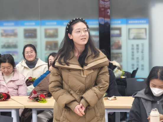 随后,女教师代表结合工作与成长经历发言,分享了在双创教育中的坚守与收获,展现了新时代女性教育工作者的昂扬风采。肖峰副院长认真聆听并积极回应,对大家的初心与付出给予了高度肯定,鼓励大家立足岗位、再创佳绩。