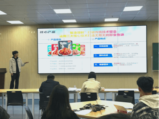 本次创新创业互选会中,5支优秀项目团队受邀上台,详细介绍了各自团队的项目内容,并明确所需人才类型,诚邀学生加入。其中,“三神一面”项目团队备受瞩目。该团队与农村合作社开展产、供、销全方位合作,选用优质小麦作为原材料,保证产品质量。他们经过600多次实验,制作了12000多份热干面,历经210天,成功研制出适合家庭消费场景且风味地道的热干面。截至2024年6月,该项目产品月销售额已超20万件,复购率超过30%。