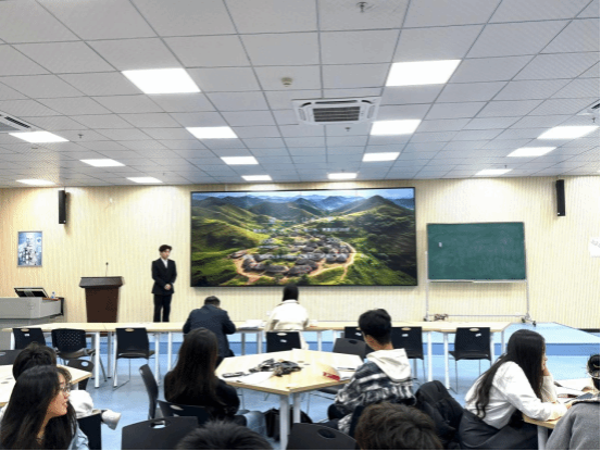 课程特别邀请优秀校友、青年创业者钱入仓分享实战经验。钱入仓校友以自身创立的光伏巡检项目为例,剖析了市场定位、团队搭建及资源整合中的关键问题,并坦言:“创业是不断试错的过程,提前预判风险比盲目行动更重要。”他还针对学生提出的“项目冷启动”“融资渠道”等困惑逐一解答,为在场学子提供了针对性建议。课程尾声,各小组将精心设计的“小组名片”张贴于教室文化墙,涵盖团队口号、创新方向及阶段目标,集中展示团队特色。