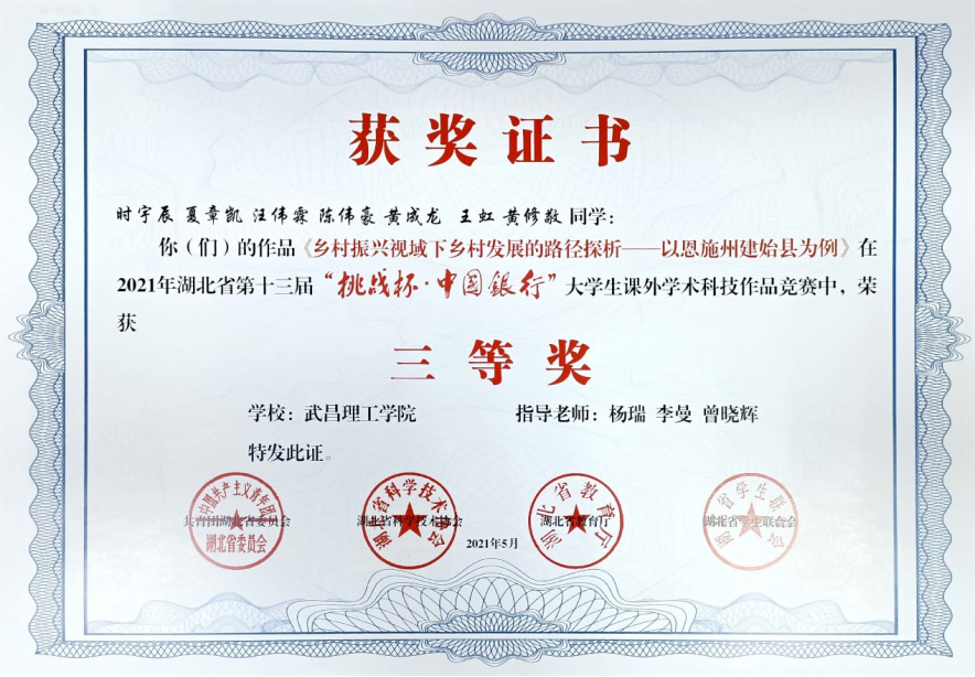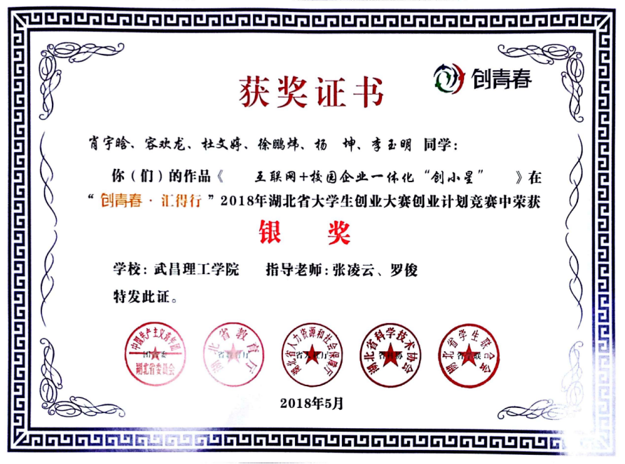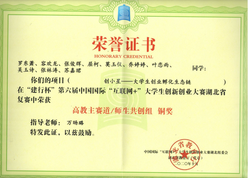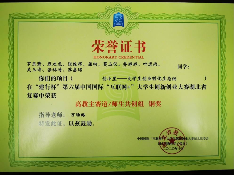 近年来,学院先后被湖北省教育厅授予“湖北省大学生创业示范基地”、“湖北省大学生创新创业俱乐部”“湖北省省级2138CC太阳集团”;被授予“大学生KAB创业俱乐部”并荣获“湖北省优秀大学生创新创业俱乐部”称号;被认定为“武汉市中小企业创业之家”“武汉大学生创业学院”、“众创空间”平台,获评“江夏区‘三区融合’大学生创业孵化载体示范高校”。学院教师带领学生参加创新创业类比赛,均获得较好名次。